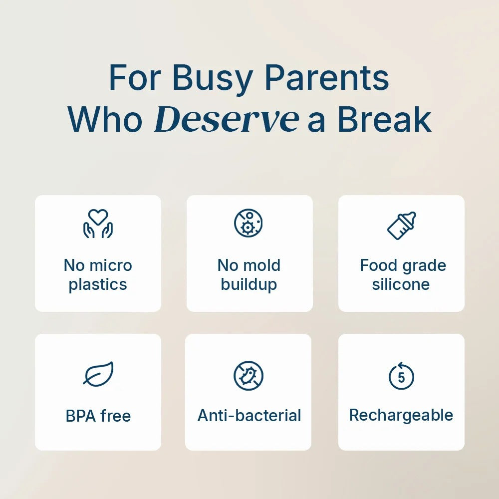 Who has time to stand at the sink forever? The 360° PowerBrush spins through dried milk and bottle gunk fast - even in the corners you can never reach. Less scrubbing, more winning (and maybe a hot coffee foronce).