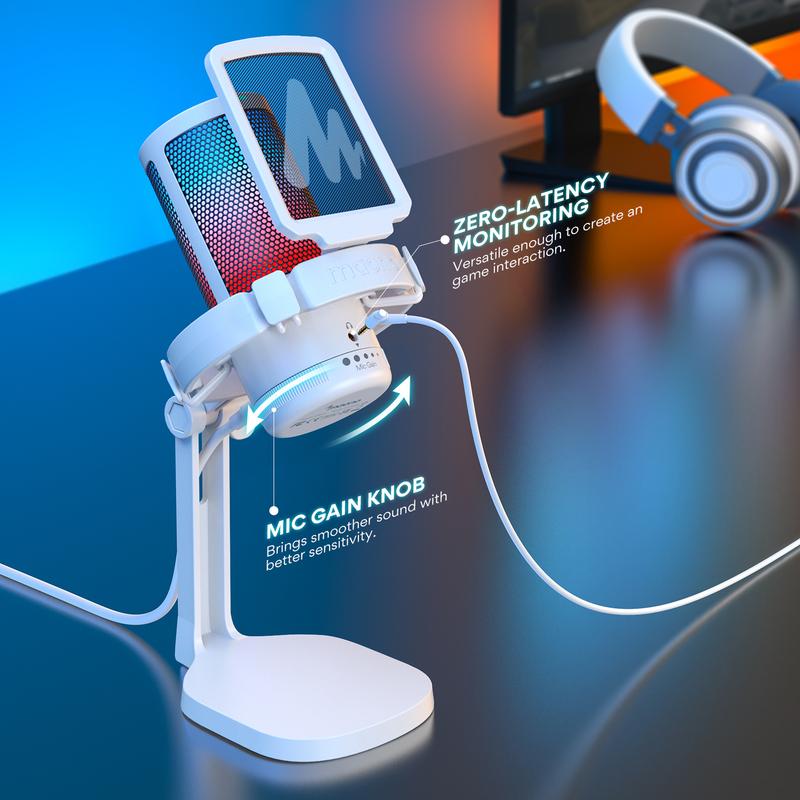 Take your streaming, podcasting, or online gaming to the next level with the USB Microphone. Designed for serious creators, this condenser mic features noise cancellation, customizable RGB lighting, zero-latency monitoring, and seamless USB/USB-C connectivity.